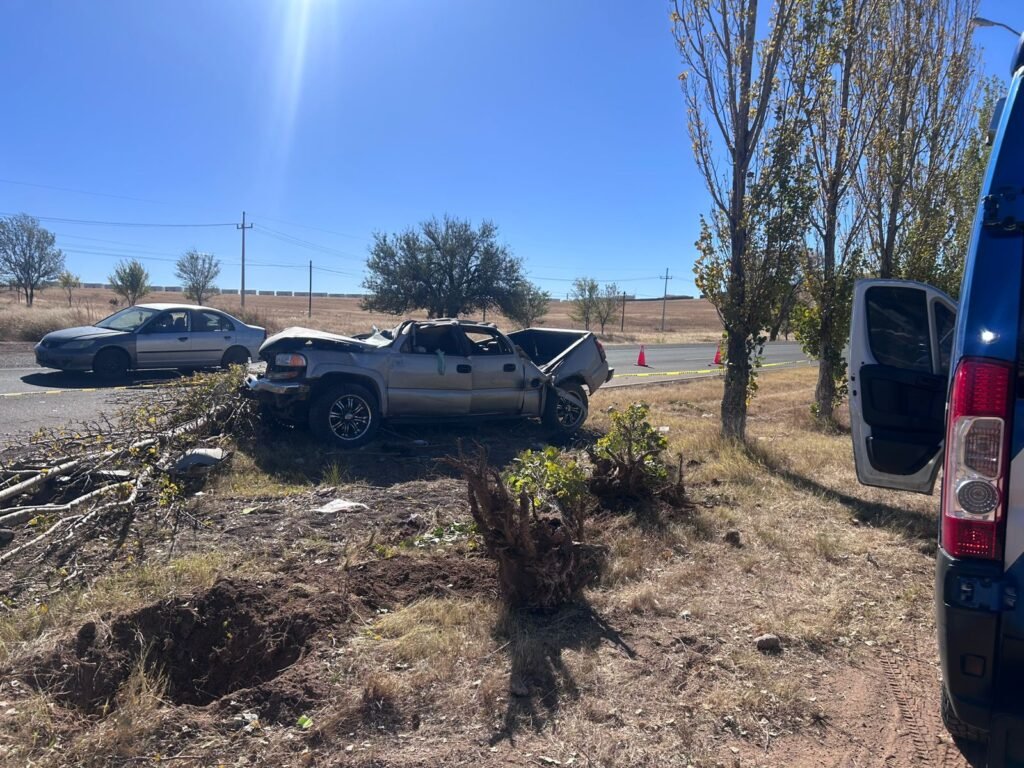 Minutos después, a la altura de los Cerritos Colorados, los agentes observaron una polvareda y localizaron la camioneta volcada fuera de la carpeta asfáltica. Según la evaluación preliminar, el conductor perdió el control debido a la velocidad, lo que provocó que saliera del camino y derribara tres árboles ubicados en el camellón central.